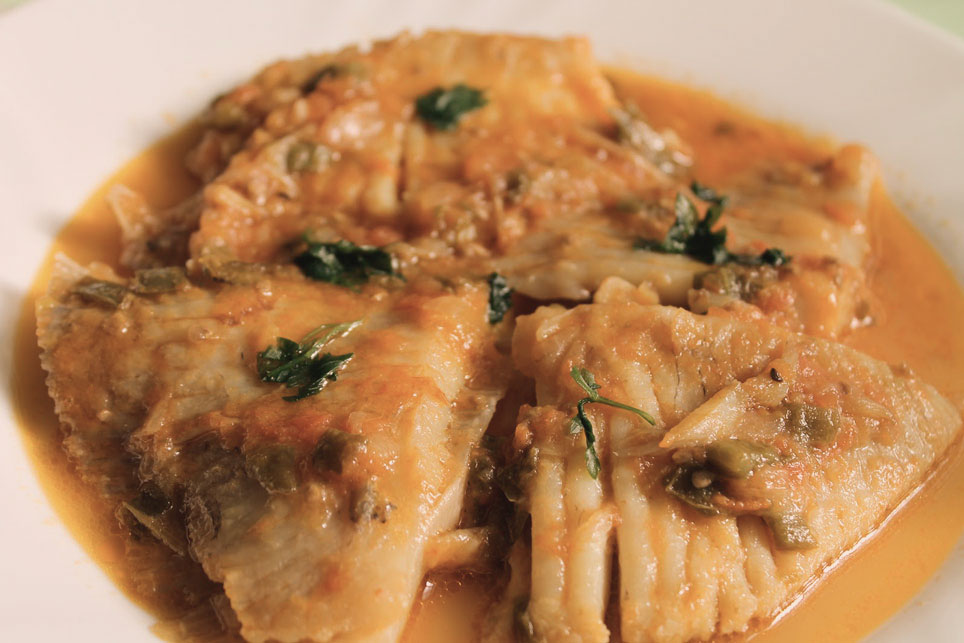 Se trata de uno de los platos más personales de la cocina ibicenca. La base es la raya, un pescado propio de la isla al que se acompaña con una salsa de almendras tostadas picadas, perejil, azafrán, pimientos rojos y vino blanco. Se presenta en la típica cazuela de barro de la isla.